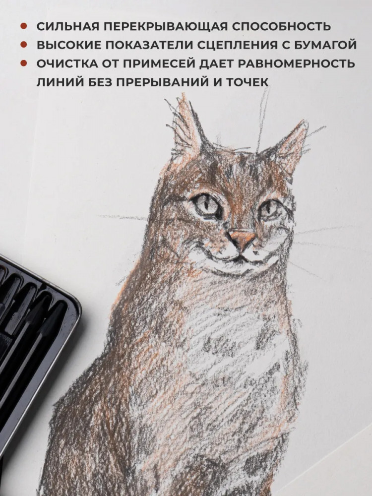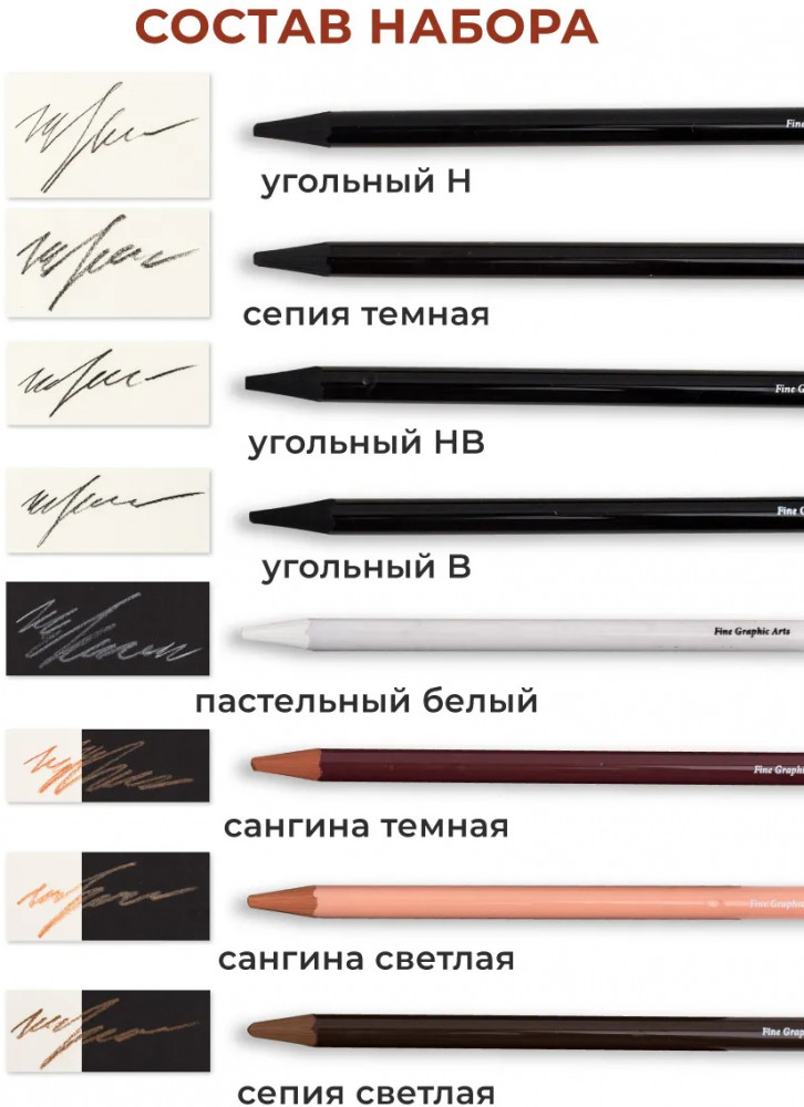 💳 Оплатить за товар можно при получении 🇰🇿 Есть бесплатная доставка по Казахстану от 1 дня 🎁 Копите бонусы с каждой покупки Набор отлично подойдет любителям графического рисунка и портрета. В состав набора входят самые популярные материалы для графики: белый пастельный карандаш, сангина светлая и темная, сепия светлая и темная, угольные карандаши 3 степени жесткости. Карандаши-монолиты, без деревянного корпуса, только грифель. Такие карандаши гораздо удобнее точить и их хватает надолго. |