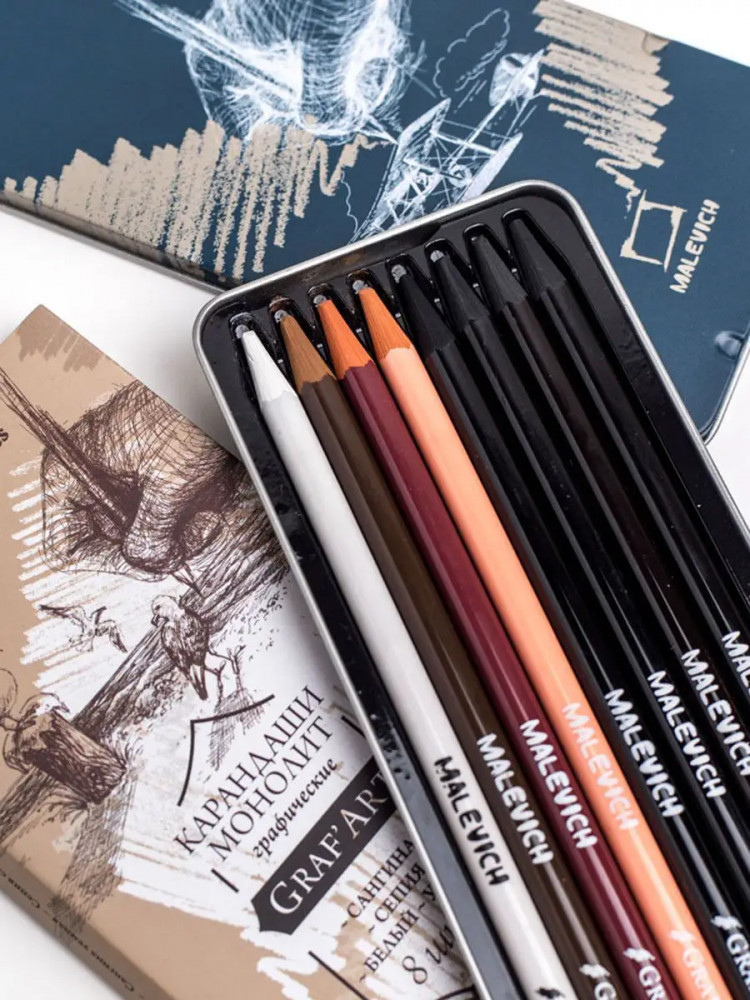 МалевичЪ Набор графических материалов-20% +111 качественные карандаши хороший набор надёжная упаковка