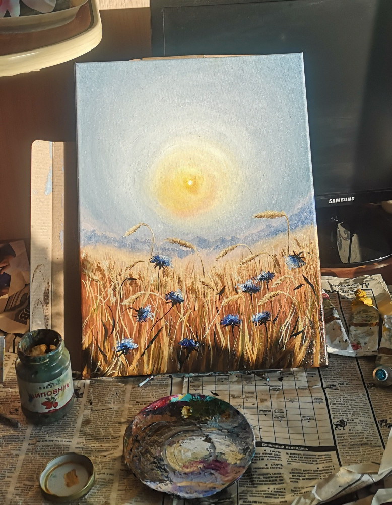 Холст хороший, но был слабовато натянут. Пыталась использовать клинья, но какие-то постоянно выпадали, хотя прибивала молотком