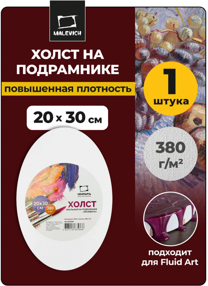 МалевичЪ Холст на подрамникекачество холста МДФ основа доска выпирает В данный момент этот товар отсутствует в продаже. Возможно, у нас найдется аналогичный или похожий товар здесь. Профессиональный овальный холст плотностью 380 г/м² на подрамнике «Малевичъ» — полностью готовый к работе идеально грунтованный холст, успешно прошедший тестирование опытными художниками. Изготавливается из натурального хлопкового полотна. Повышенная плотность холста позволяет использовать его для картин большого формата. Холст — очень ровный, без узелков. Он качественно натянут на овальный деревянный подрамник, не имеет дефектов в виде волн. Гладкая поверхность со среднезернистой фактурой удобна для предварительных набросков. В комплект входят клинья, позволяющие регулировать степень натяжения полотна. Подходит для масла, акрила, темперы и других художественных красок (кроме акварельных). |