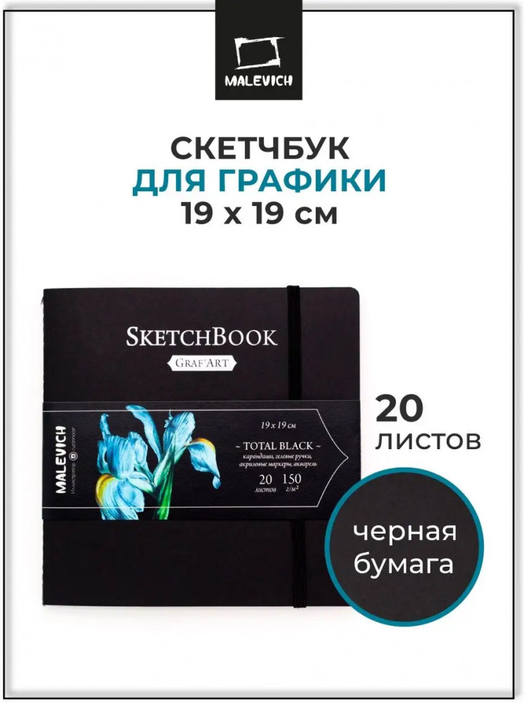 МалевичЪ Скетчбук для графики «Total Black»-30% +20