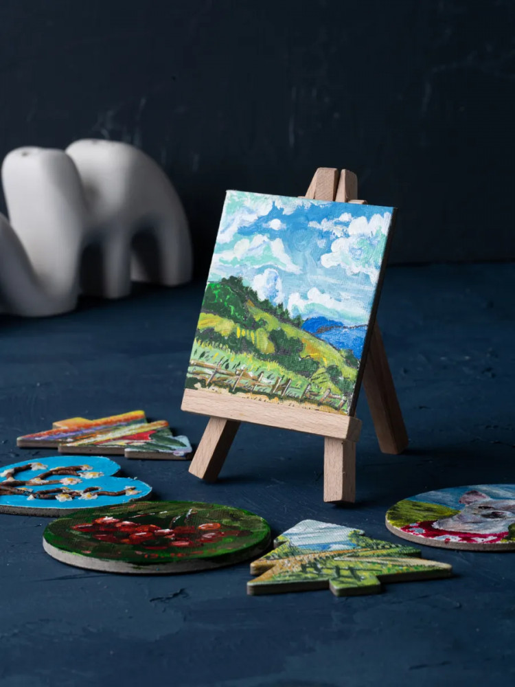 Хорошие и качественные маленькие холсты-магниты. В наборе 4 штуки.