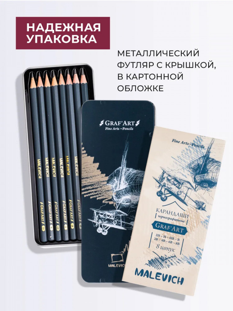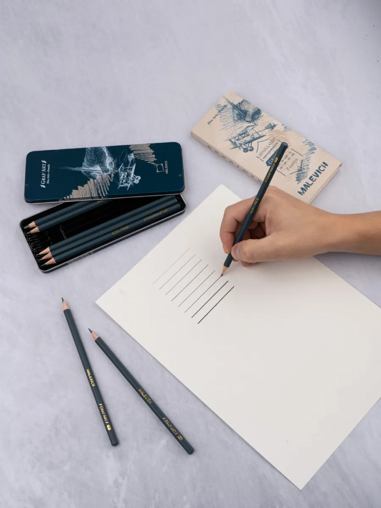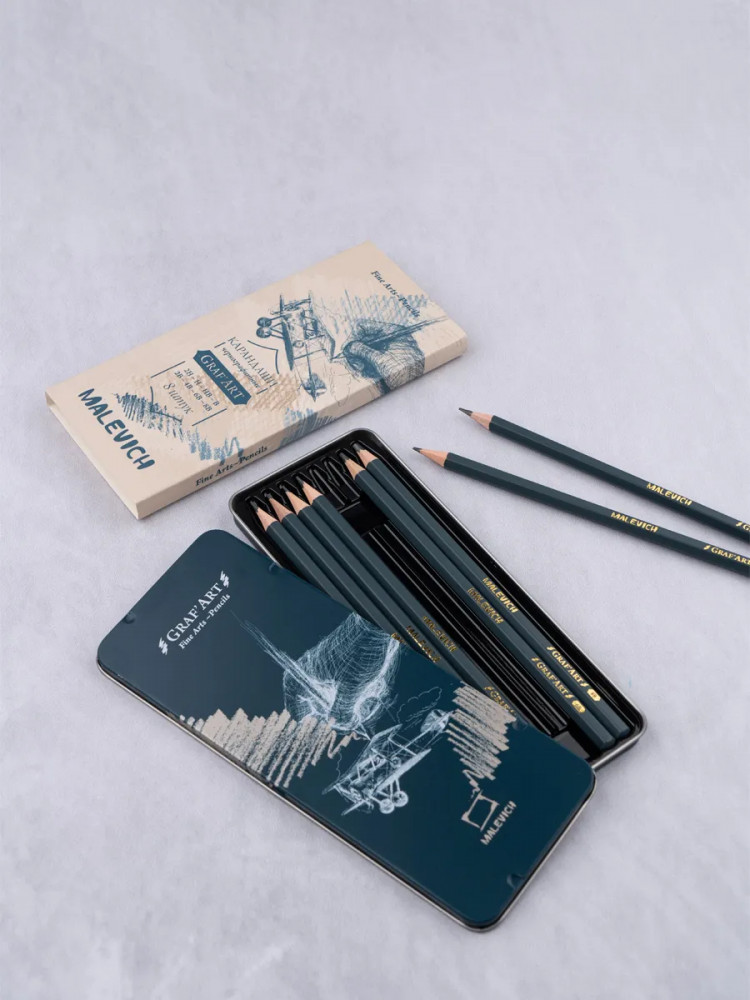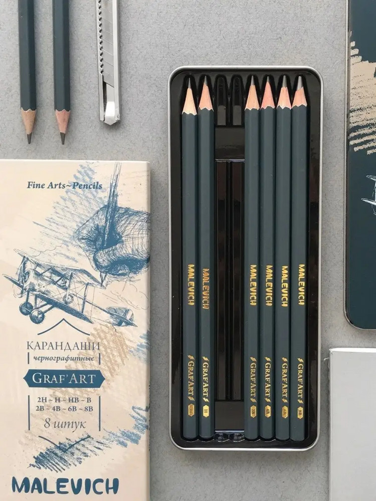 МалевичЪ Набор карандашей «Graf’Art»-20% +47 разная твердость хорошо точится металлическая коробка подходит для начинающих