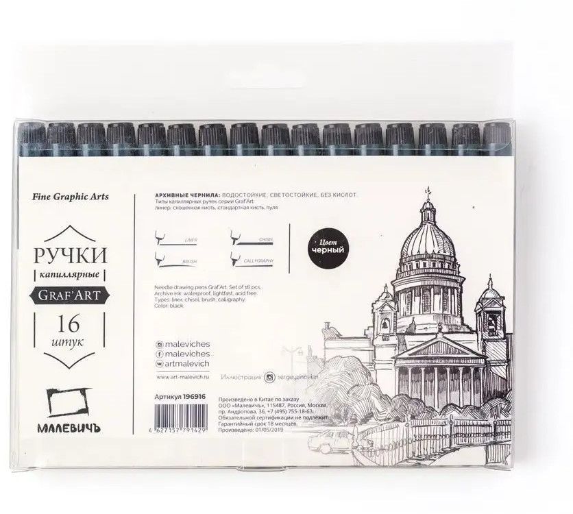 МалевичЪ Набор капиллярных ручек «Graf’Art»-30% +95 пигментация не размазываются срок годности качество
