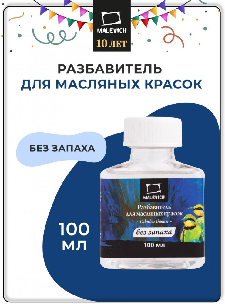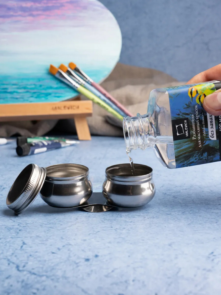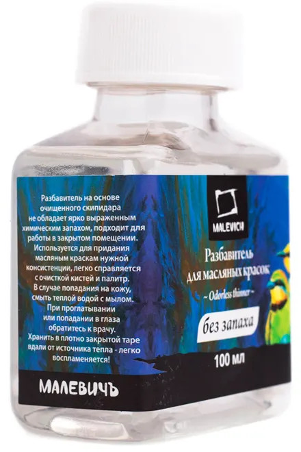 МалевичЪ Разбавитель без запаха для масляных красокнет запаха ложится ровно отличная вещь хорошее качество лучшее В данный момент этот товар отсутствует в продаже. Возможно, у нас найдется аналогичный или похожий товар здесь. Разбавитель на основе очищенного скипидара не обладает химическим запахом, поэтому прекрасно подходит для длительной работы в закрытом помещении. Используется для придания масляным краскам нужной консистенции, а также легко справляется с очисткой кистей и палитр. |