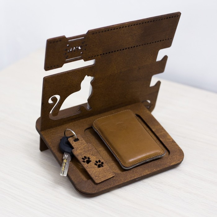 То что из фанеры вполне нравится, но думала, что будет более прочный, и можно будет использовать для телефона и планшета. Но вертикальная часть тонкая, планшет конечно удержит, но думаю долго не протянет))) поэтому только для телефона. Покупала ребенку, но из за хрупкости потребует бережного обращения.