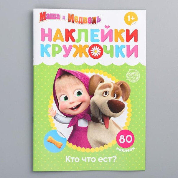 Наклейки-кружочки «Кто что ест?». Маша и Медведь-25% +13