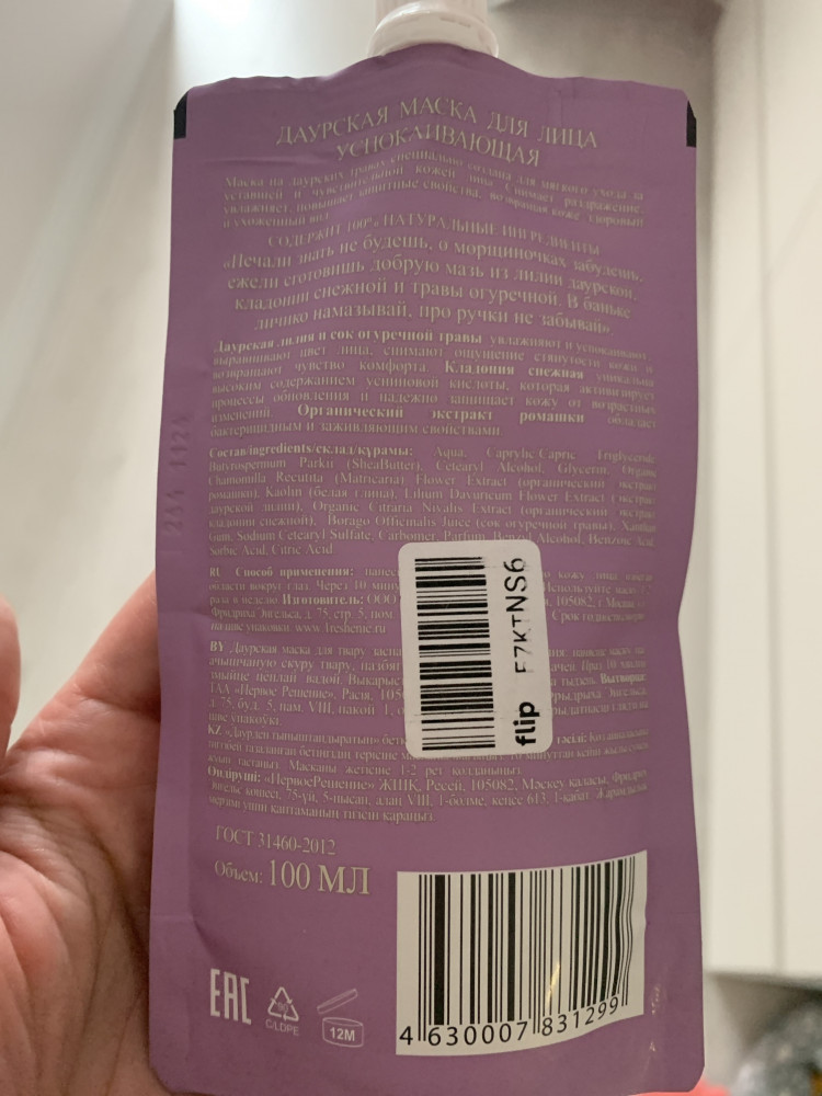 Данная маска не успокаивает, а наоборот раздражает кожу. После маски все лицо было красное и чувствовалось жжение😭, хотя у меня нет аллергии. Не советую ее покупать