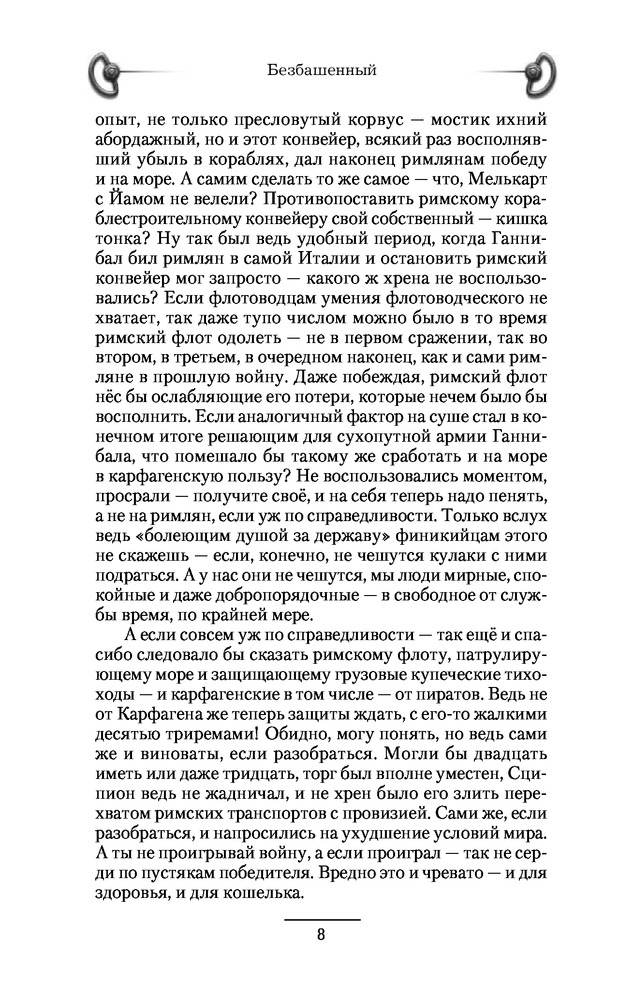 Серия: Попаданец Весной 196 года до нашей эры шесть наших современников вместе со своими испанскими сослуживцами переводятся для дальнейшей службы из Испании в Карфаген. Город этот большой и по античным меркам комфортный, если кошелёк не пустует. Но и в нём покой нашим попаданцам только снится. Сами того не желая, друзья почти сразу же оказываются в гуще местных интриг. Карфагенские финикийцы, родосские греки, египтяне — змеиный клубок вряд ли оказался бы опаснее. Но и наши попаданцы — уже не зелёные новички в античном мире. Их знания и приобретённый в Испании опыт помогают им не только уцелеть, но и с честью выполнить нелёгкое задание нанимателя. Но вот «жить поживать, да добра наживать» тихо и спокойно не выходит ни у кого. Карфаген тоже бурлит. В нём сталкиваются интересы противоборствующих олигархических группировок, и в стороне от них друзьям не отсидеться, поскольку и их наниматель — тоже простой карфагенский олигарх. |
