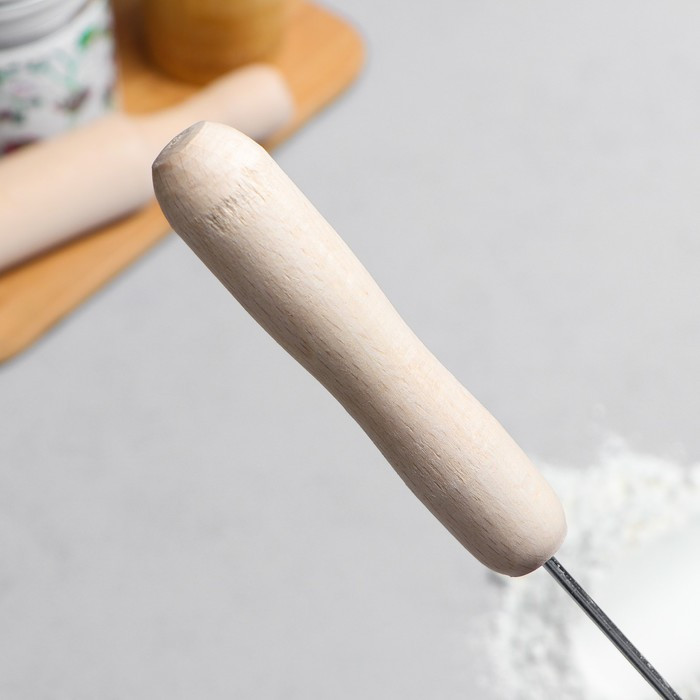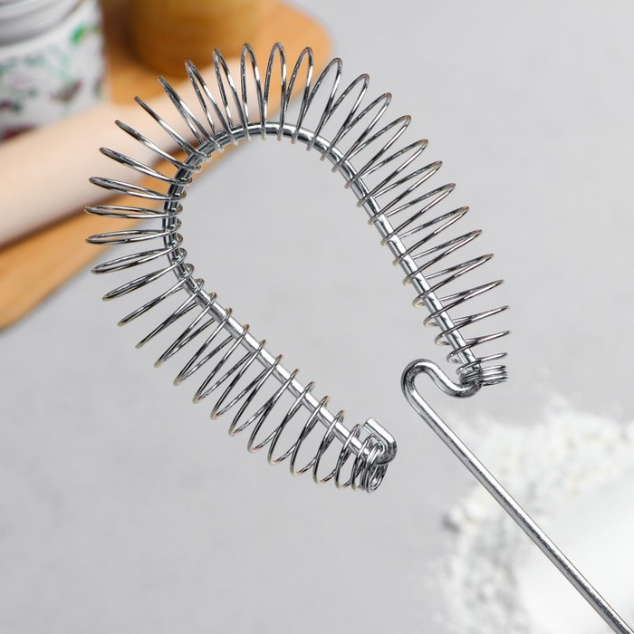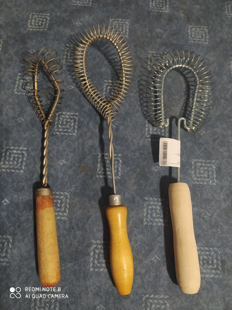 Сравнивая этот венчик с агрегатами советских времён,можно поставить ему троечку.Ручка коротковат,нет изгиба,сама ручка отшлифована не оченьшерозовата,даже лаком не покрыли,но может,и к лучшему,не будет облазить .Сам венчик крепкий, пружинка плотная, жёсткая.Покупала в подарок,тк не представляю,как на кухне без такого венчика хозяйки обходятся..И вилками взбивают,и другими венчиками,которые и в подмётки этим не годятся)Взбить омлет,завести блины и тд- чувствуешь консистенцию теста.Так,в принципе,хороший венчик.
