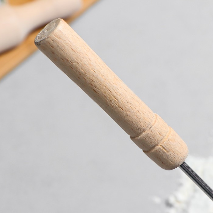 Плохо обработаны срезы проволоки из которой сделана спираль, на деревянной ручке имеются сколы.
