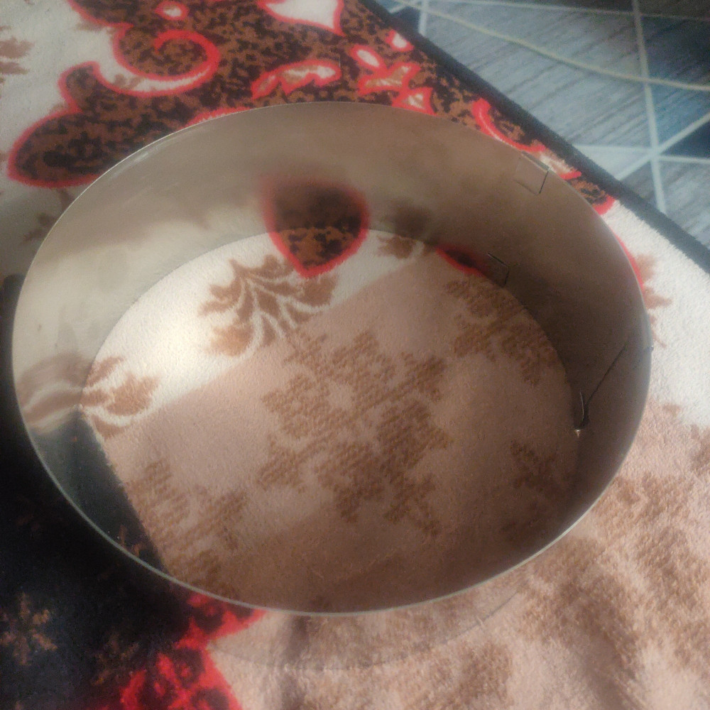 Замечательная форма, очень полезная в хозяйстве. Кольцо сделано из прочного металла, который надежно фиксируется. Для приготовления слоеных салатов или десертов -- то, что нужно.