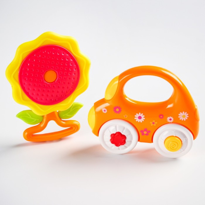Игрушки неудобные. Малыш не может ни в ротик положить покусать, ни в ручки взять. Прям на цветочке пожалели мягкого материала, хотя представлены, как прорезыватели. Машинку вообще в рот нельзя брать, жесткая пластмасса. Купились на яркость. Оказались непригодными ни для чего. Цена завышена. Не советую.