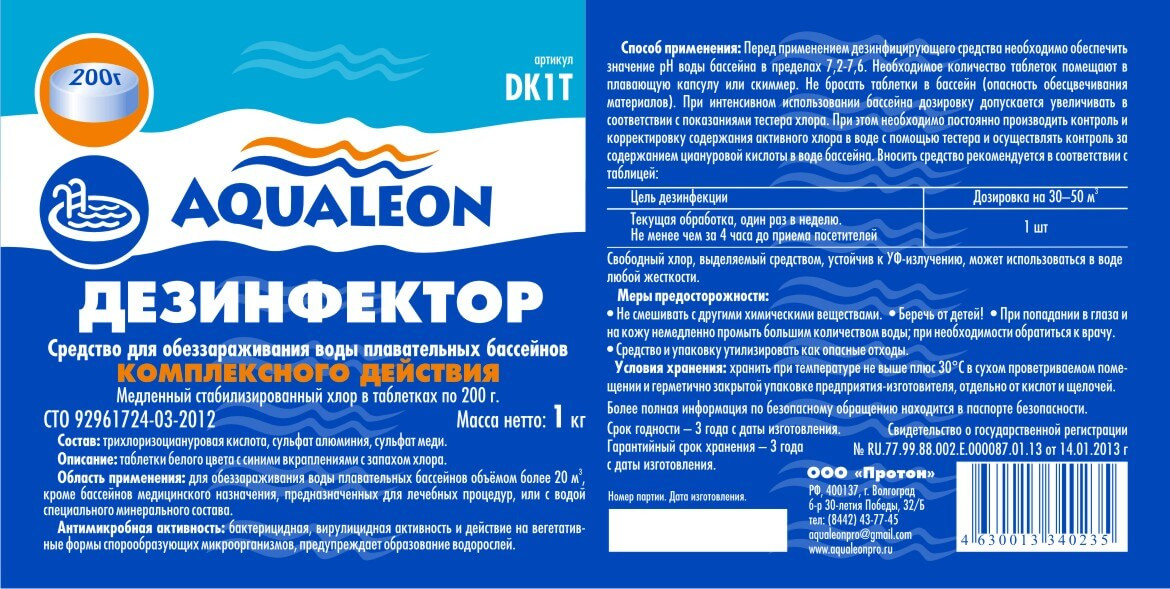 Aqualeon Средство для обеззараживания воды плавательных бассейнов медленное «Дезинфектор»-25% +134
