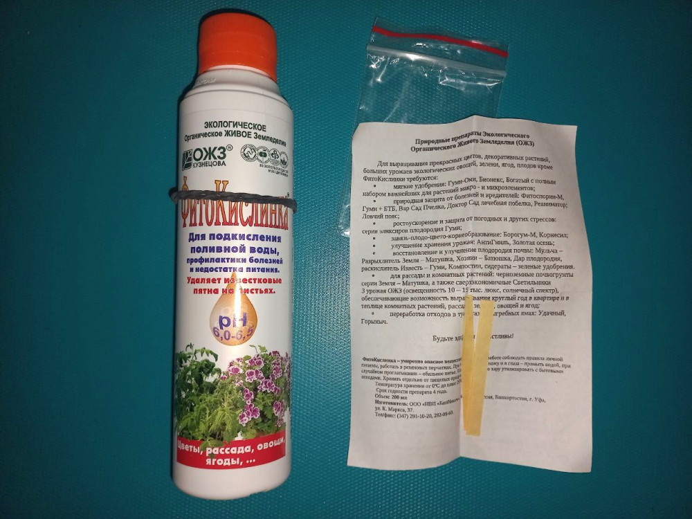 ОЖЗ Кузнецова Микроудобрение «ФитоКислинка» для подкисления жесткой поливной воды+31 эффективность для орхидей лакмусовые бумажки бутылка протекает