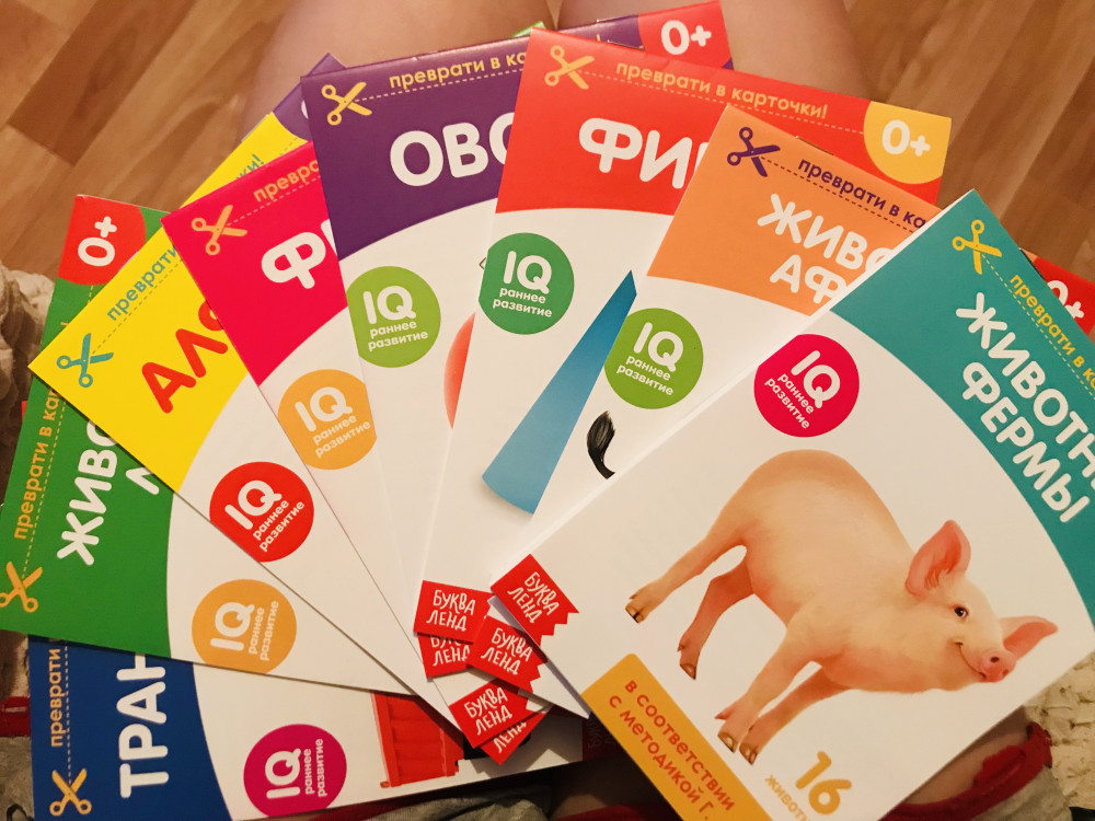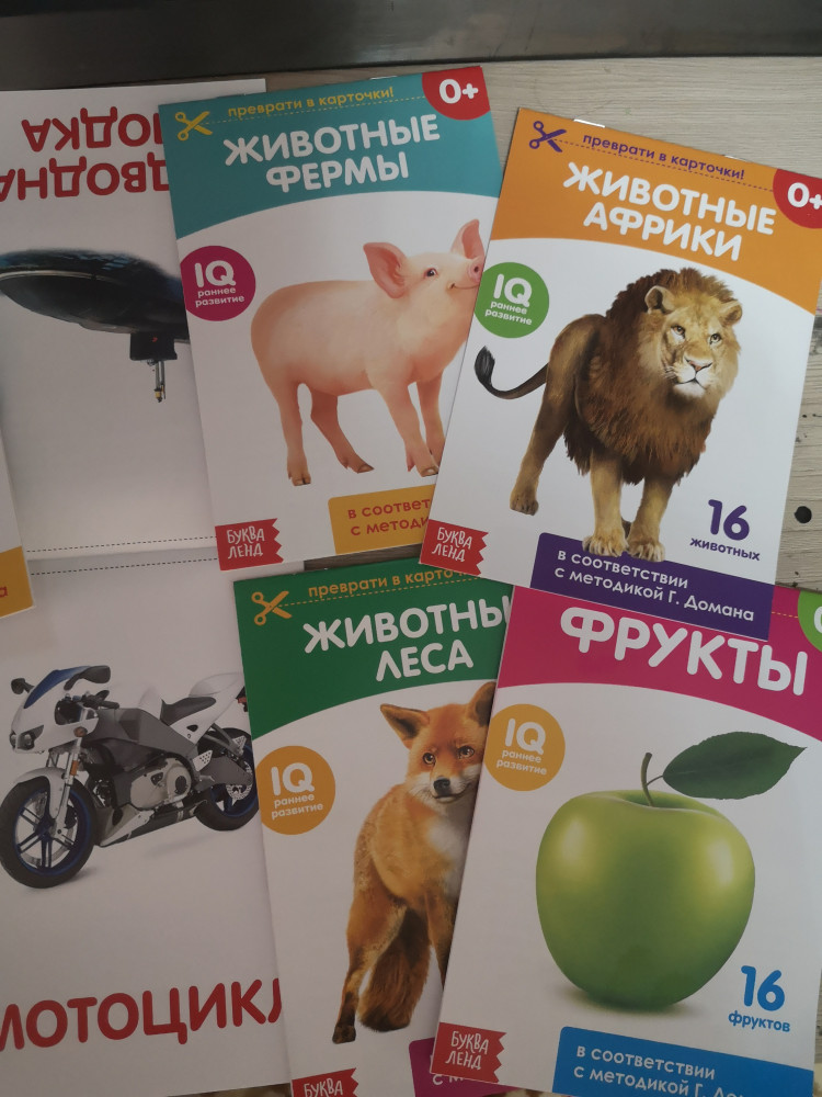 Наши любимые карточки Домана, занимаемся по ним с 1,8 месяцев. Сейчас нам уже 3 года. Большие и интересные картинки, разные темы. Единственное что тонкие немного. А так качество хорошее