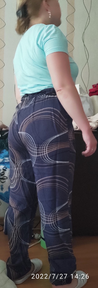 Заказывала 44 размер, рост у меня маленький, поэтому придется убрать длину немного. Расцветка красивая, свободного кроя брючки с карманами, с завышенной талией.