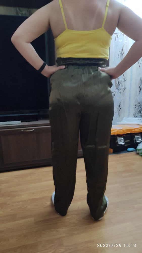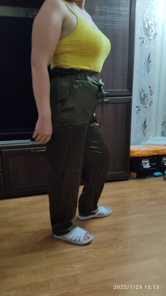 Очень понравились! Вискоза 100%,не полиэстер. Внутри не атласные. Цвет больше зеленовато-золотой, чем на картинке. На мои параметры 75 талия 95 бедра нигде не давит не болтается, супер, талия завышенная. При росте 162 длина в самый раз. Если вы чуть выше, то уже будет укороченные. Фото потом приложу.