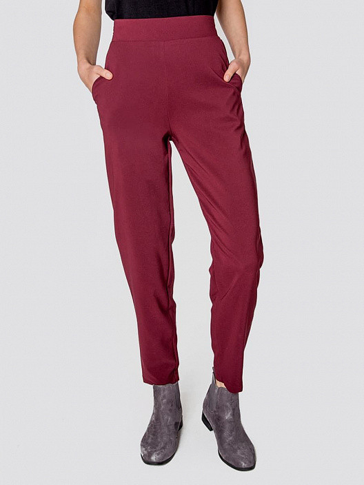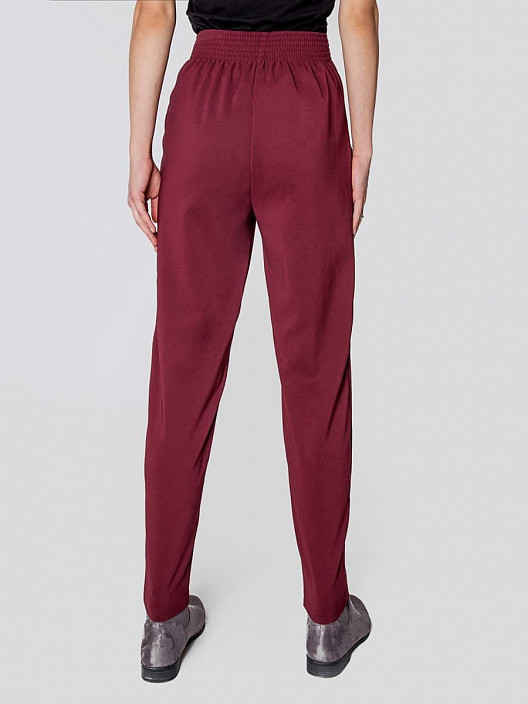 Бордовые брюки. На размер бёдер 107 см взяла 46 размер (ориентировалась на таблицу размеров) - ВЕЛИКО. причём на размер. Нужно было брать 44. Тем более материал стрейч. Цвет бордо немного темнее чем на фото, более баклажановый оттенок. Ткань тонкая, на лето. В целом брюки хорошие