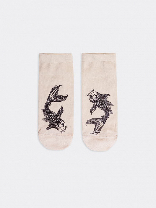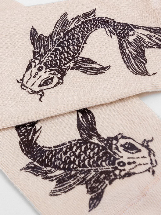 Сами носки хорошие, но рисунок нанесен штемпельные способом, то есть при растяжении носка, рисунок трескается и рыба превращается в какое-то старое поношенное нечто..... не рекомендую