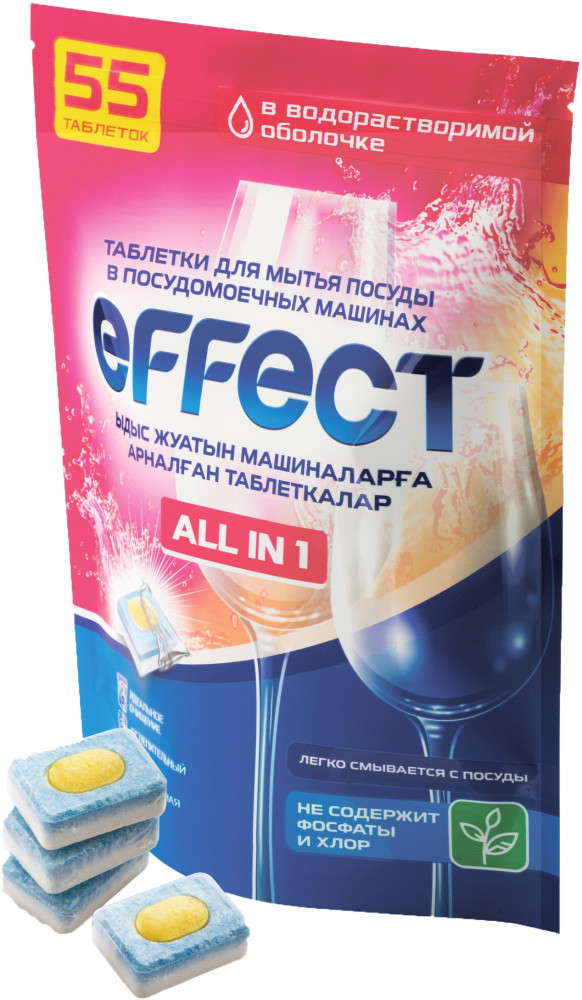 Effect Таблетки для мытья посуды в посудомоечных машинах-10% +75 хорошо растворяется хорошо отмывает без налёта без запаха совместимость