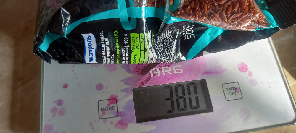 Фактический вес 380 грамм, на упаковке написано 500 грамм. Потом заметила маленькую дырку внизу пакета. Неужели при отправке не заметили, что вес пакета явно не соответствует