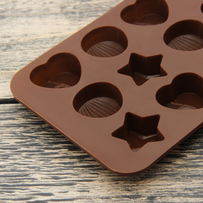 Форма предназначена для изготовления фигурного шоколада, конфет, а также для заморозки льда. На одной форме расположено несколько небольших формочек-ячеек. Форма эластична, гибка, поэтому содержимое легко можно извлечь. Для этого надо просто вывернуть форму.