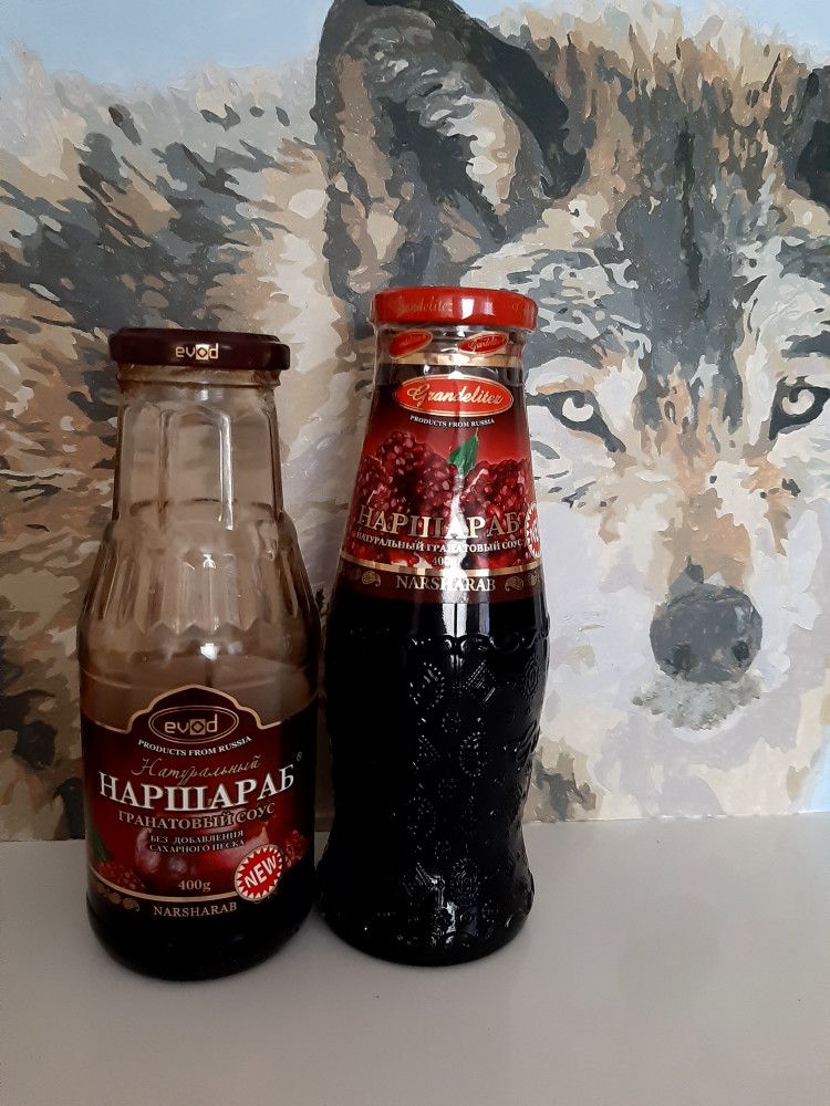 Как по мне этот соус не наршараб, мне подруга постоянно привозила настоящий домашнего приготовления из Грузии, сказать, что разница большая - ничего не сказать. В настоящем идеально сочетаются и сладость, и кислинка, и гранатовый привкус ; в этом же я чувствую будто по отдельности все ингредиенты сока, сахара и кислоты.