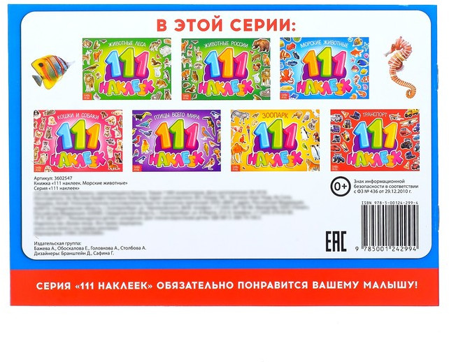 100 наклеек. Морские животные-25% +15
