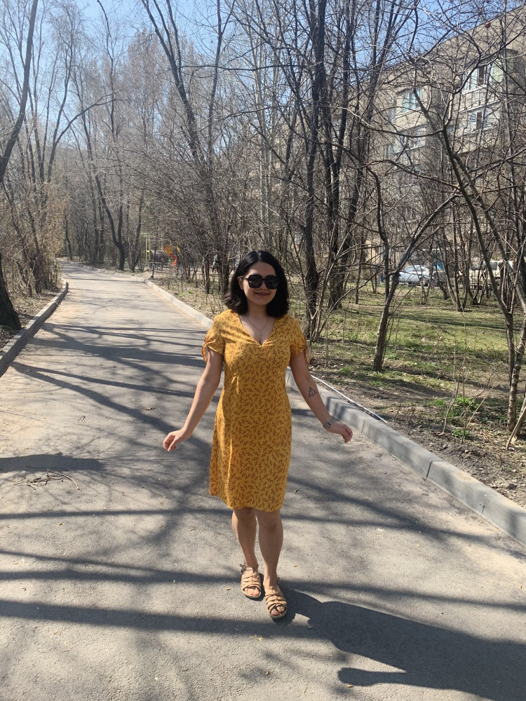 Красивое платье горчичного цвета. Материал хороший , на лето самый раз. Я брала в качестве домашней одежды Рекомендую.