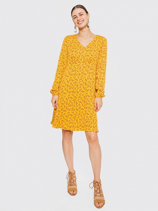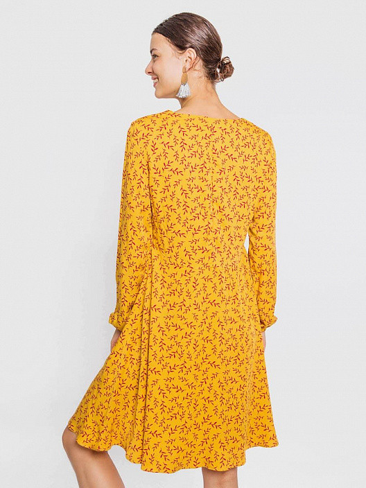 Платье хорошее, и правда горчичного цвета, не такого как на фото, а именно горчичного. Ткань- что-то вроде штапеля, жарко в нем не будет. Но платье большемерит,берите на размер меньше своего, на ог 84 и об 88 взяла 42-й размер. Оказалось большое, на вид 44 размер.