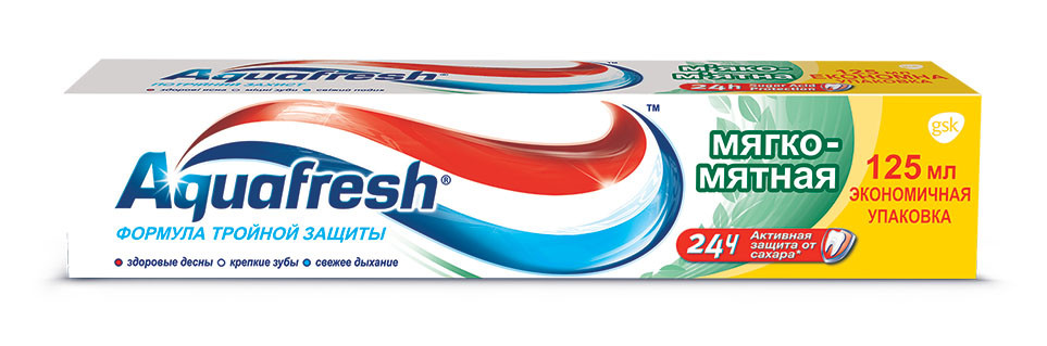 Aquafresh Зубная паста против зубного камня и налета на зубах «Мягко-мятная»В данный момент этот товар отсутствует в продаже. Возможно, у нас найдется аналогичный или похожий товар здесь. Паста разработана как лечебно-профилактическое средство для борьбы с начальными стадиями таких заболеваний полости рта как кариес и пародонтоз. При регулярном применении очищает зубы от зубного камня и препятствует образованию на зубах и деснах болезнетворного налета. На зубы и ротовую полость благотворно влияют три активных компонента пасты, содержащихся в каждой из трех цветных полосок фтор, защищающий зубную эмаль от кариеса, вещества, предотвращающие образование зубного налета, а также вещества, препятствующие возникновению неприятного запаха изо рта. |