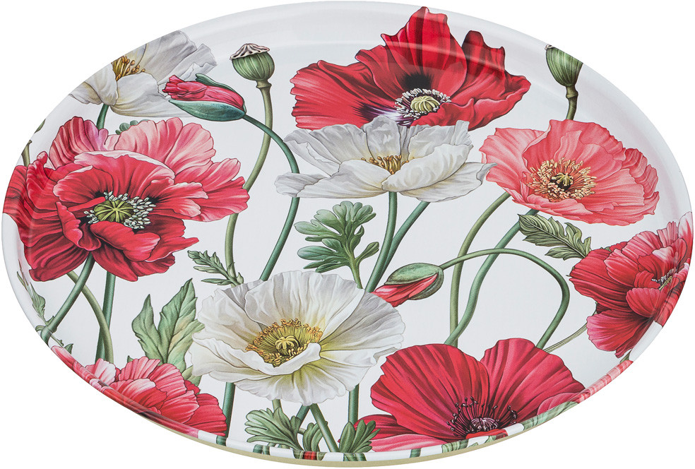 очень качественный поднос, с красивыми яркими маками...но, омрачает упертость работников магазина флип, которые лепят свои фирменные наклейки на написанное... не смогла прочесть производителя и прочее. Это на всех товарах, которые я здесь приобретаю...представьте широкий поднос, на котором достаточно места, но наклеили именно на ярлык производителя...я предполагаю, что это делается умышленно