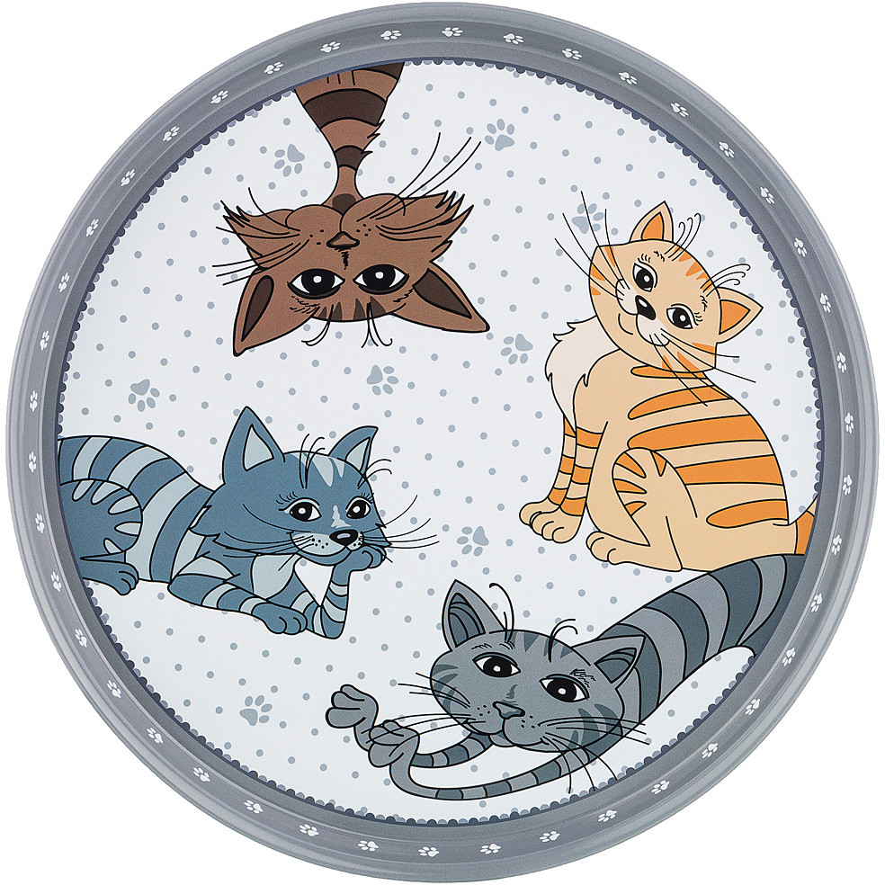 Очень милый поднос. Яркий, веселый. Качественный рисунок. Купила два. Еще два с другим рисунком Синие коты заказала на подарок подругам-кошатницам.