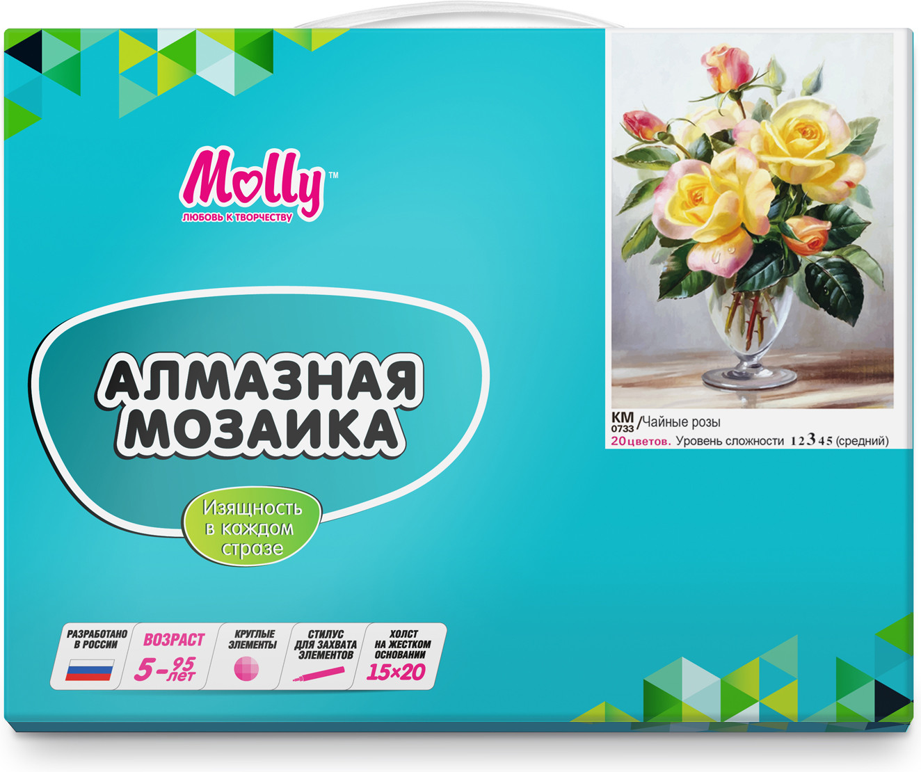 Molly Мозаика алмазная «Чайные розы»В данный момент этот товар отсутствует в продаже. Возможно, у нас найдется аналогичный или похожий товар здесь. Алмазная мозаика — это новое увлекательное направление в творчестве по созданию переливающихся картин. Один из самых популярных цветов на земле — роза. Диаметр самого крупного цветка составляет 83 сантиметра. Диаметр самого маленького цветка не превышает размеров рисового зерна. Уровень сложности средний. |