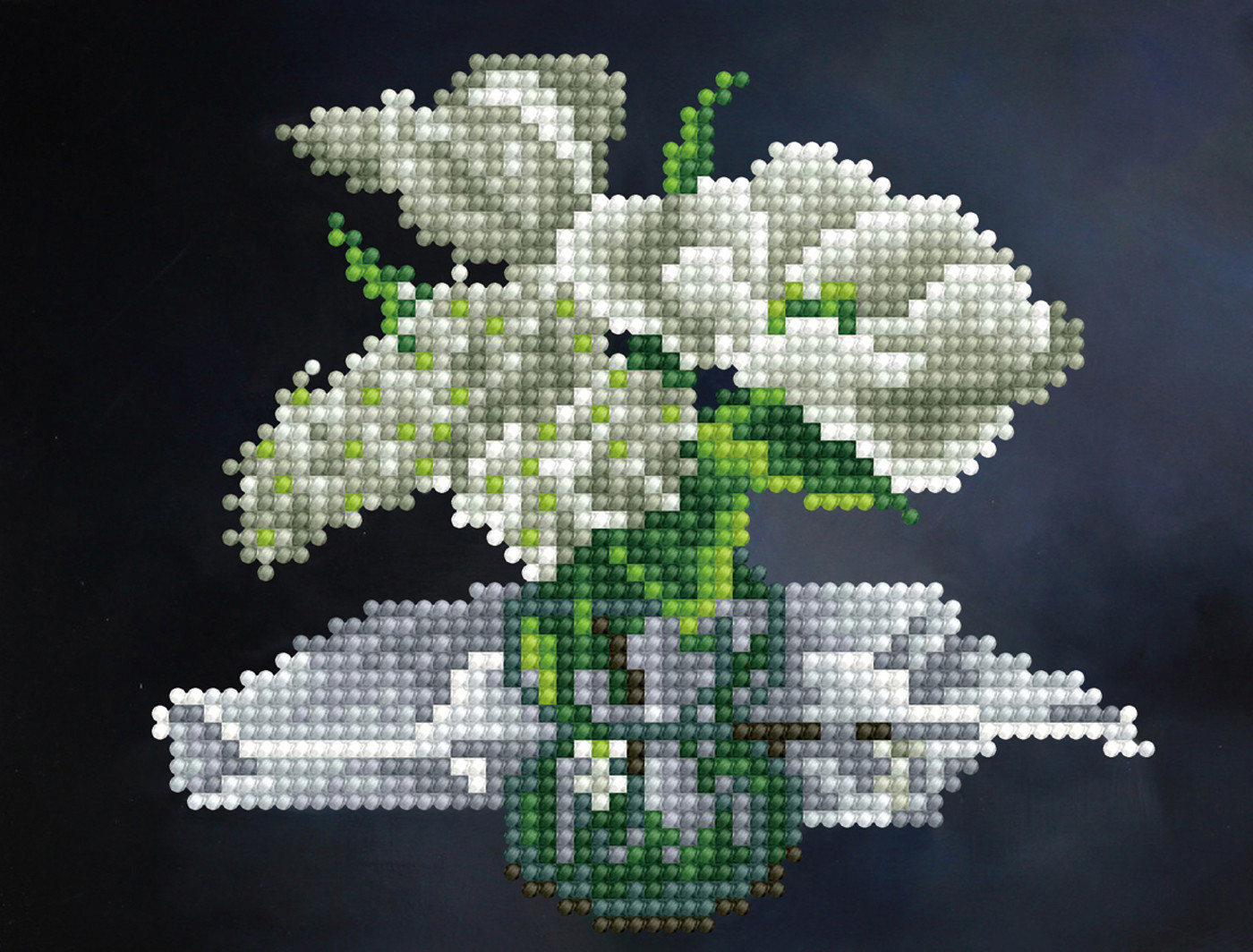 Алмазная мозаика — это новое увлекательное направление в творчестве по созданию переливающихся картин. С помощью мозаичных элементов можно выложить мозаичную картину с изображением букета белых лилий в вазе. При этом выкладывать нужно не полностью весь холст, как в случае с полной выкладкой, а только его часть. Уровень сложности легкий.