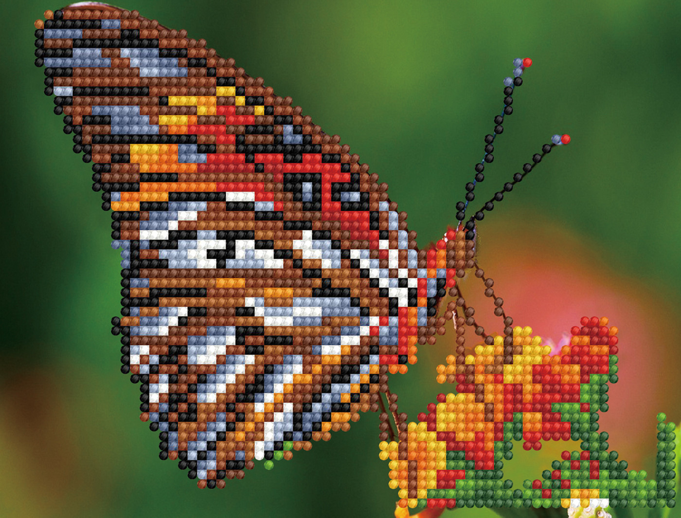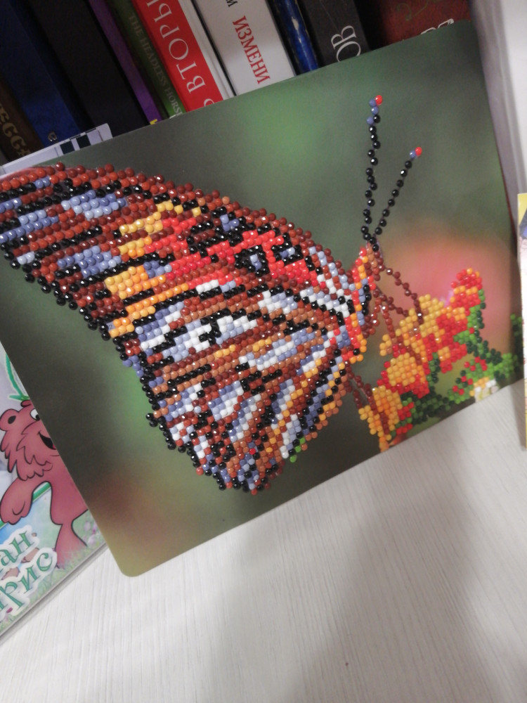 Алмазная мозаика — это новое увлекательное направление в творчестве по созданию переливающихся картин. С помощью мозаичных элементов набора на холсте можно выложить изображение бабочки, с необыкновенным узором на крыльях, сидящей на ярко-оранжевом цветке. Фон изображения — та часть, которая уже нанесена на холст. Уровень сложности легкий.