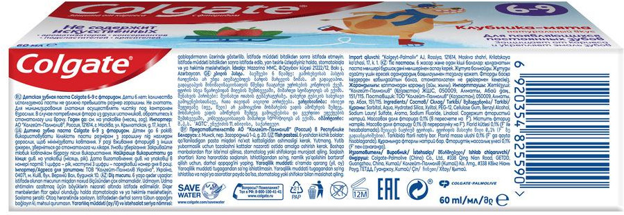 💳 Оплатить за товар можно при получении 🇰🇿 Есть бесплатная доставка по Казахстану от 1 дня 🎁 Копите бонусы с каждой покупки Серия: Kids Новая детская паста Colgate 6-9 поможет ребенку заботиться о появляющихся постоянных зубках. С ней чистка зубов станет не только полезной, но и приятной. Любимый вкус клубники и мяты придется по вкусу вашему ребенку и поможет мотивировать ребенка к регулярной гигиене полости рта. |