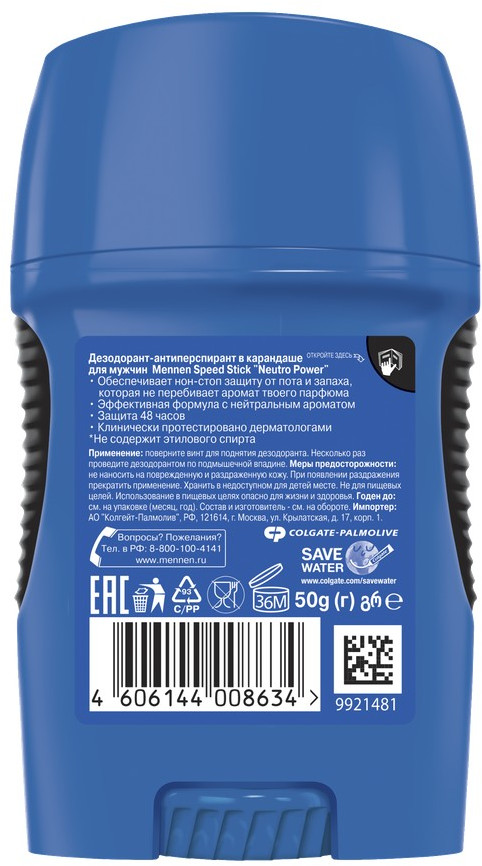 Mennen Speed Stick Neutro Power твердый дезодорант-антиперспирант эффективно защищает от пота и запаха в течение 48 часов, не перебивая аромат Вашего парфюма. |