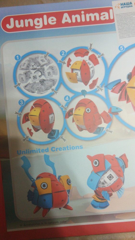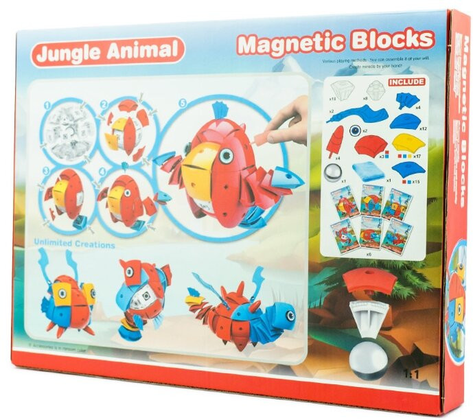 Наша игрушка Конструктор магнитный «Животные тропического леса»В данный момент этот товар отсутствует в продаже. Возможно, у нас найдется аналогичный или похожий товар здесь. Магнитный конструктор «Животные тропического леса» состоит из 93 деталей. Собирая элементы будущей конструкции, ребёнок будет тренировать мелкую моторику рук, координацию движений и развивать логическое мышление. Детали конструктора присоединяются к металлическому шарику со встроенным магнитом. Из них можно собрать одну из фигурок забавных тропических зверюшек, изображенных на упаковке, или любой другой персонаж, который подскажет фантазия. Элементы конструктора изготовлены из пластмассы и металла. |