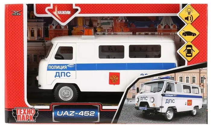 Технопарк Машина «Полиция ДПѻ данный момент этот товар отсутствует в продаже. Возможно, у нас найдется аналогичный или похожий товар здесь. УАЗ-452 «Полиция ДПС» — это миниатюрная копия легендарного автомобиля УАЗ-452, в народе ещё его называют как «Буханка» или «Таблетка». А легендарный он, потому что производят его аж с 60х годов прошлого века, и за это время автомобиль претерпел множество модификаций, УАЗик используется практически во всех отраслях производства, и по сей день стоит на конвейере. Играть с такой игрушкой одно удовольствие, у машинки открываются все двери, подвижные колёса, а световые и звуковые эффекты придают игрушке большую реалистичность. Игрушка выполнена с хорошей детализацией с использованием только самых качественных материалов. |