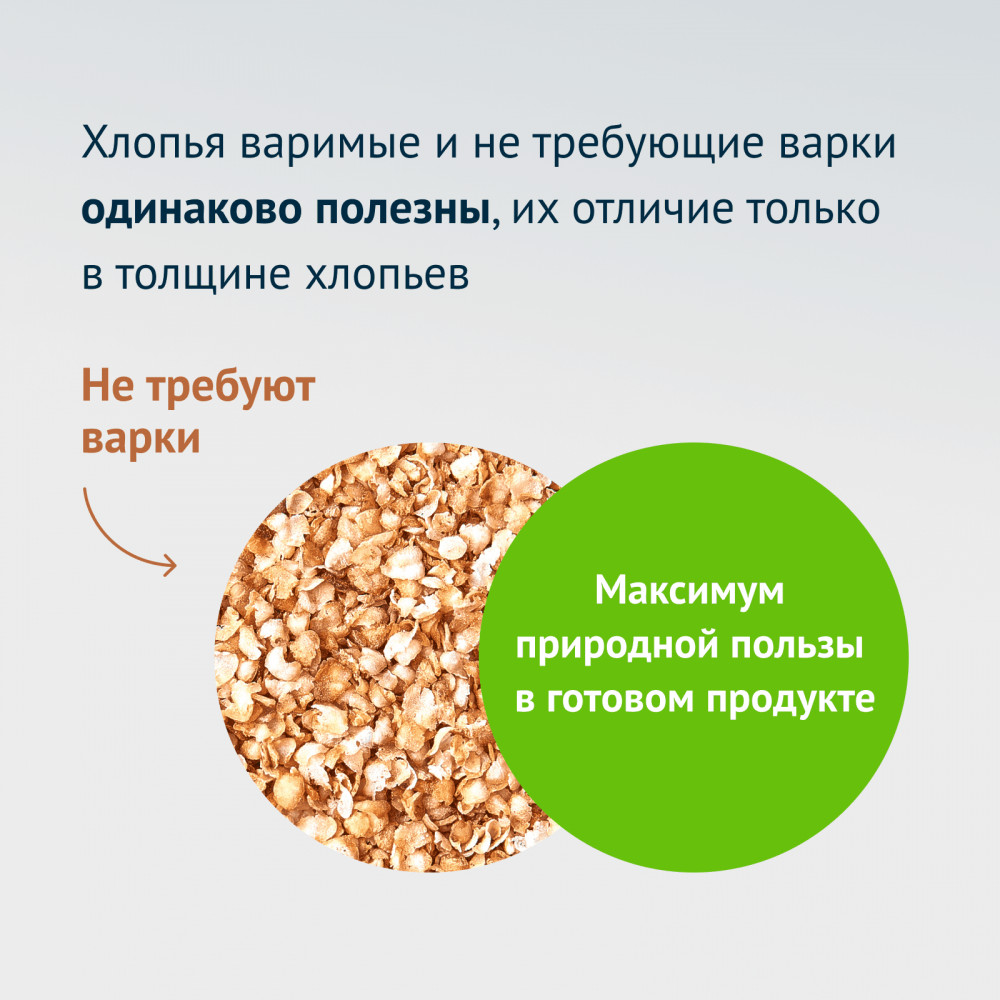 Хорошие хлопья. Удобный формат. Часто не ели, т.к. знаю, что для хлопьев над крупой "издеваются" механически и термически, и витамины в них не сохраняются из-за этого. Но как один из вариантов неплохая каша. Заказывала как выручалку - микроволновку не держим из-за соображений её вреда, ребёнок из школы приходит, родители оба на работе, и может самостоятельно вскипятить чайник и заварить себе вкусной гречки.