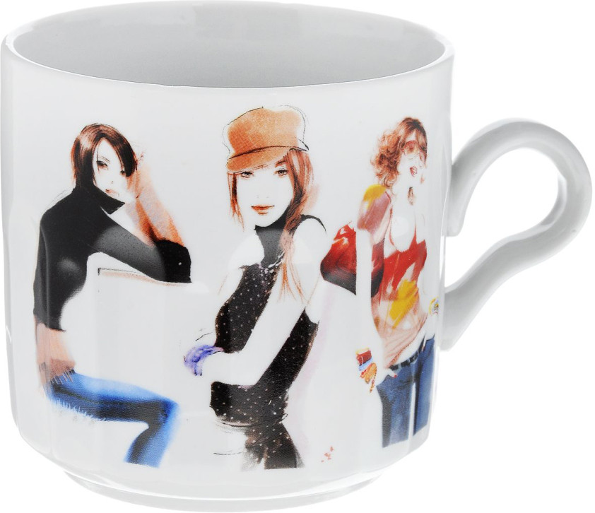 Кружка точно как на фото. Красотки размытые. Фарфор сероват и ушки узкие. Мужа палец не влез, а так хорошие, качественные, большие кружки. Взяла травки запаривать. Лично мне понравились. Цена вообще, копейки!!!