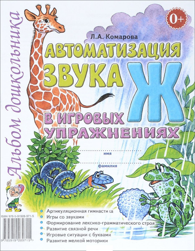 💳 Оплатить за товар можно при получении 🇰🇿 Есть бесплатная доставка по Казахстану от 1 дня 🎁 Копите бонусы с каждой покупки В пособии предлагается система упражнений по автоматизации звука Ж у дошкольников 4–7 лет, которая превращает однообразную и монотонную работу по закреплению произношения звука в интересную игру. Вместе с его автоматизацией у ребенка совершенствуется навык чтения, развивается мелкая моторика, творческое воображение. |