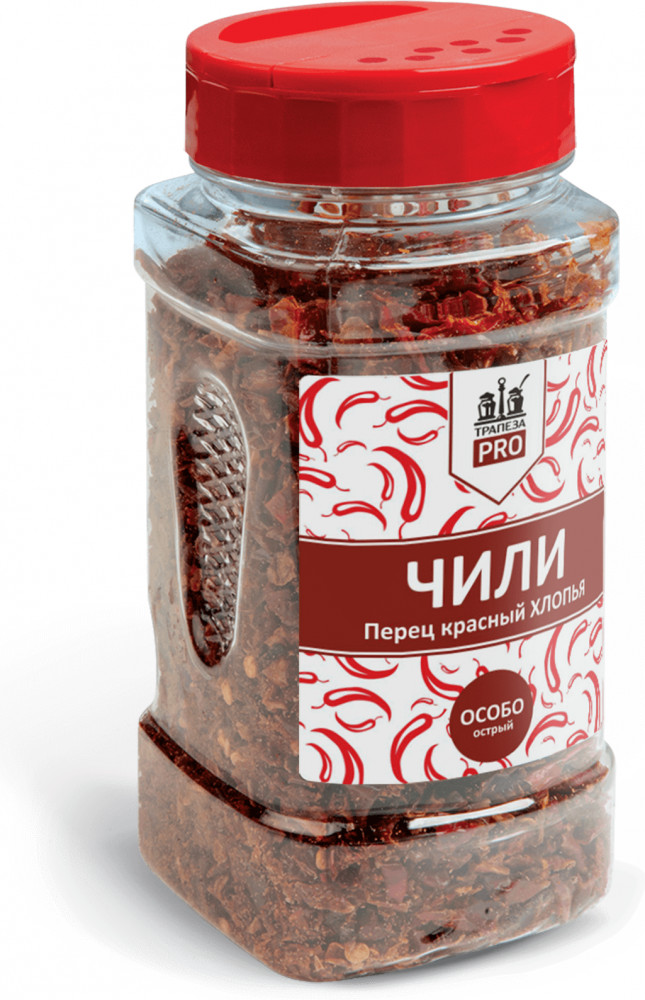 Взяла все приправы данной серии. Удобная баночка из твердого пластика. Крышка с дозатором. Данный товар качественный. Перец чили имеет вид хлопьев, что очень удобно в использовании. Ароматный. С хорошей остротой. Советую. И не только этот товар, а и всю серию "трапеза".