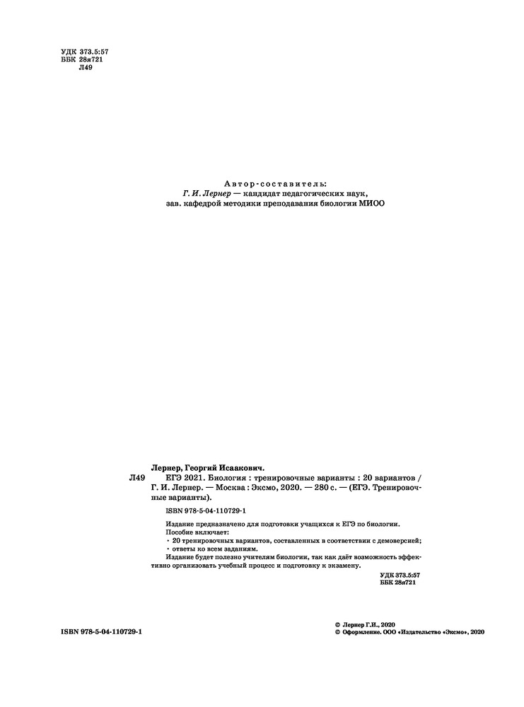 Отзывы «ЕГЭ-2021. Биология. Тренировочные варианты. 20 вариантов»