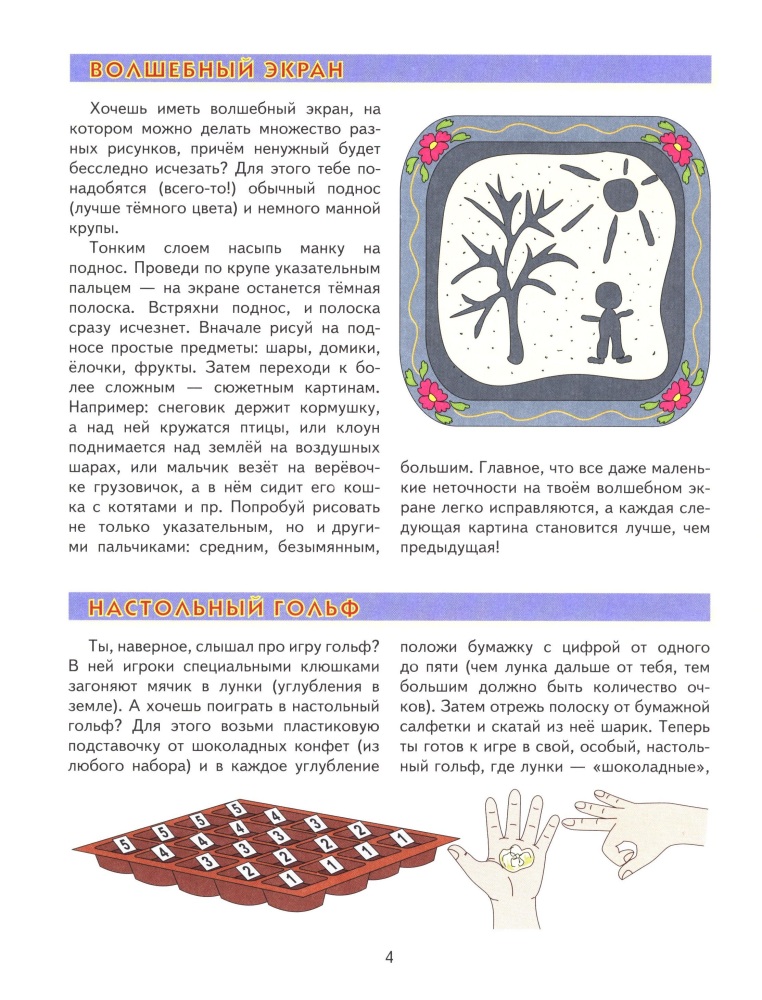 Книга хорошая. Но... Только 20 страниц посвящено различным поделкам, пальчиковому театру, театру пальчиковых теней, рисованию на крупе и многому другому интересному, а остальные 100 страниц - это пальчиковая гимнастика со стихами на каждое упражнение. В рекламе книги это, увы, не отражено. Книга красочная.