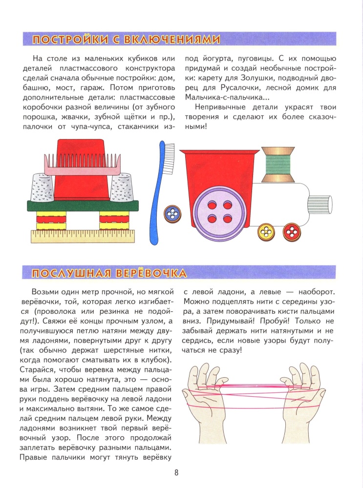 Большая книга заданий и упражнений на развитие мелкой моторикиТатьяна Александровна Ткаченко В данный момент этот товар отсутствует в продаже. Возможно, у нас найдется аналогичный или похожий товар здесь. Серия: Большие книги знаний для самых маленьких Чтобы научить малыша говорить, нужно не только тренировать его артикуляционный аппарат (губы, язык, дыхание), но и развивать тонкие движения пальцев рук. Мелкая моторика рук напрямую связана с такими высшими свойствами сознания, как внимание, мышление, воображение, наблюдательность, зрительная и двигательная память, речь. Тренировать пальчики малыша жизненно необходимо начиная с рождения, ведь вся его сознательная жизнь потребует использования точных, координированных движений кистей и пальцев: одеваться, завязывать шнурки, рисовать — вот лишь несколько задач, с которыми ребенок будет сталкиваться ежедневно. В книге опытного |