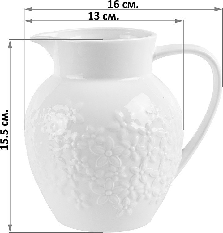 Elan Gallery Кувшин «Цветочки»В данный момент этот товар отсутствует в продаже. Возможно, у нас найдется аналогичный или похожий товар здесь. Серия: Цветочки Кувшин серии «Цветочки» выполнен из высококачественного белого фарфора с рельефным рисунком. Кувшин прекрасно подходит для сервировки домашних компотов, лимонадов, холодного чая и любых других напитков. В прекрасной серии фарфоровой посуды представлен широкий ассортимент товаров для сервировки стола, которые несомненно впишутся в любой интерьер благодаря лаконичному дизайну и высокой функциональности. Такому подарку будет рада любая хозяйка! |