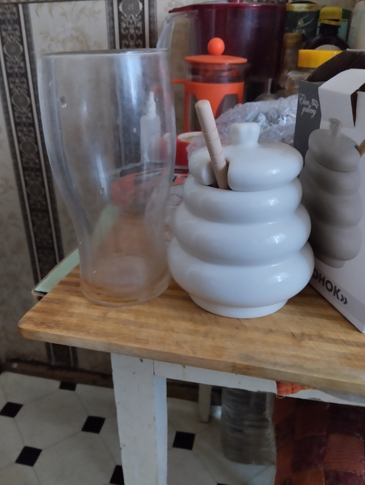 Баночка для мёда очень понравилась, выполнена качественно. Нет сколов и отбитых краёв. Оптимальный размер и качество. Крышка плотно не прилигает, так как нет силиконовой прокладки. Очень понравились цена и качество. Рекомендую.